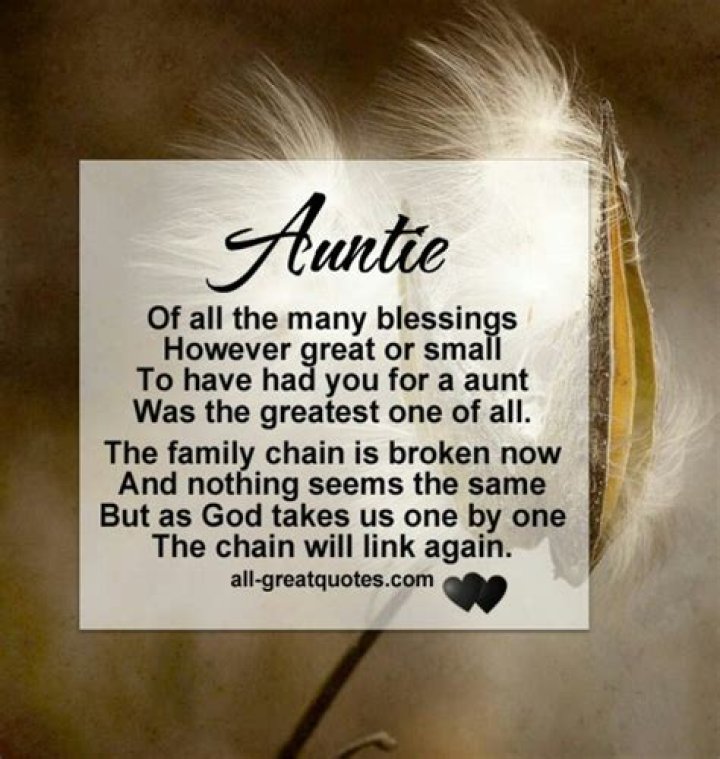 - Shared experiences: When people share quotes about losing an aunt, they are essentially sharing their experiences of grief and loss. This can create a sense of connection and community, as it shows that others have gone through similar experiences and understand the pain of losing a loved one.