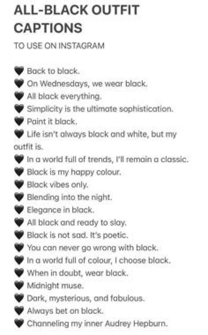 Here are a few tips for writing great captions for black outfits:
