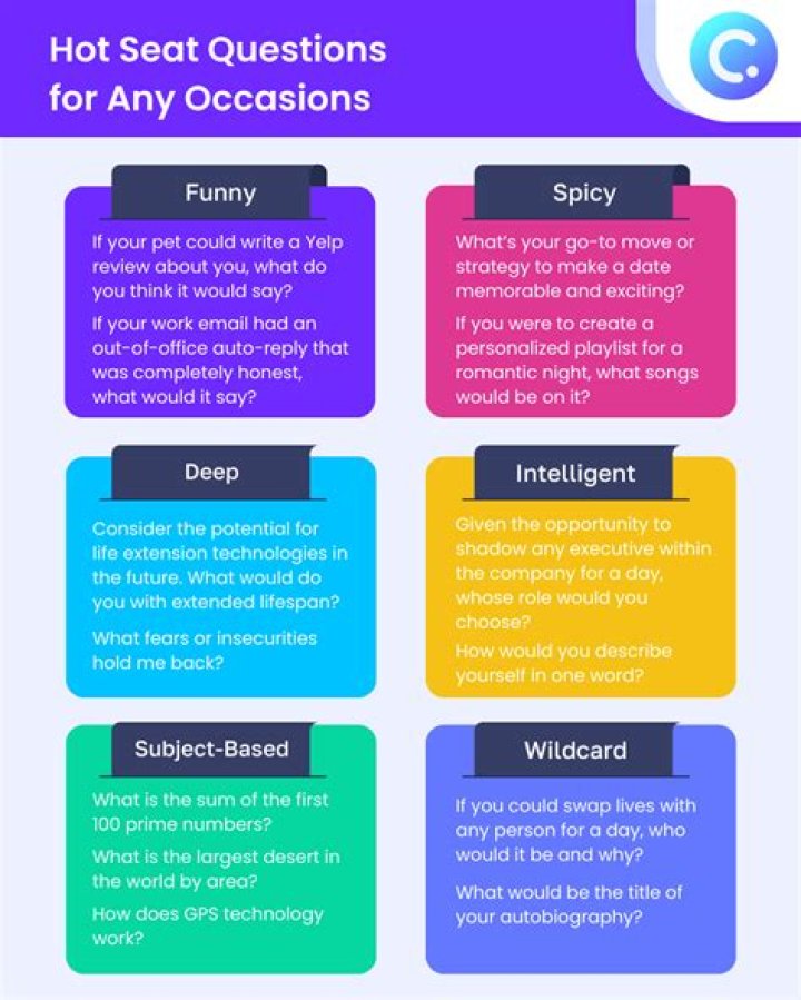 Moreover, memorable hot seat questions often tap into cultural touchstones or current events, making them relatable and easy to recall. By connecting with the audience's shared experiences and knowledge, these questions create a sense of familiarity and nostalgia that contributes to their memorability.
