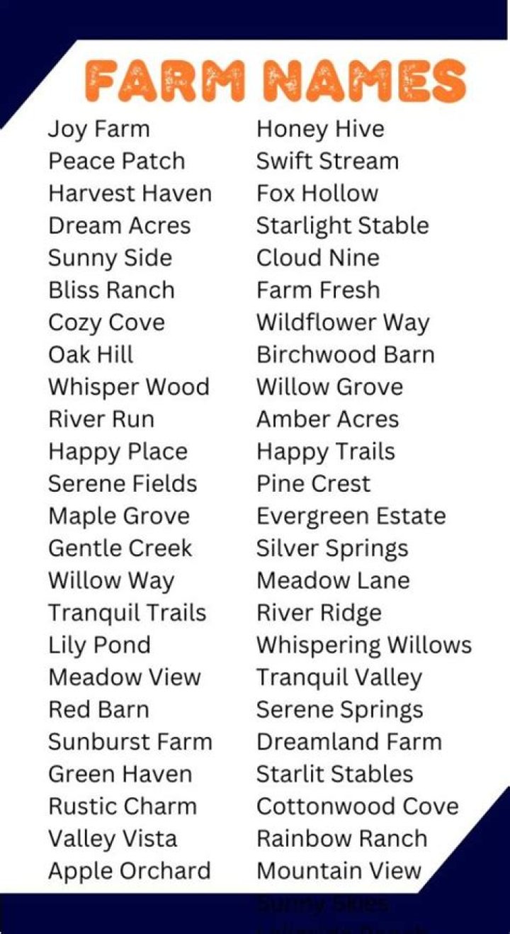- Consider Your Location: Your farm's location can also influence your choice of name. Choose a name that is relevant to your farm's location and will not become outdated if you move or expand.