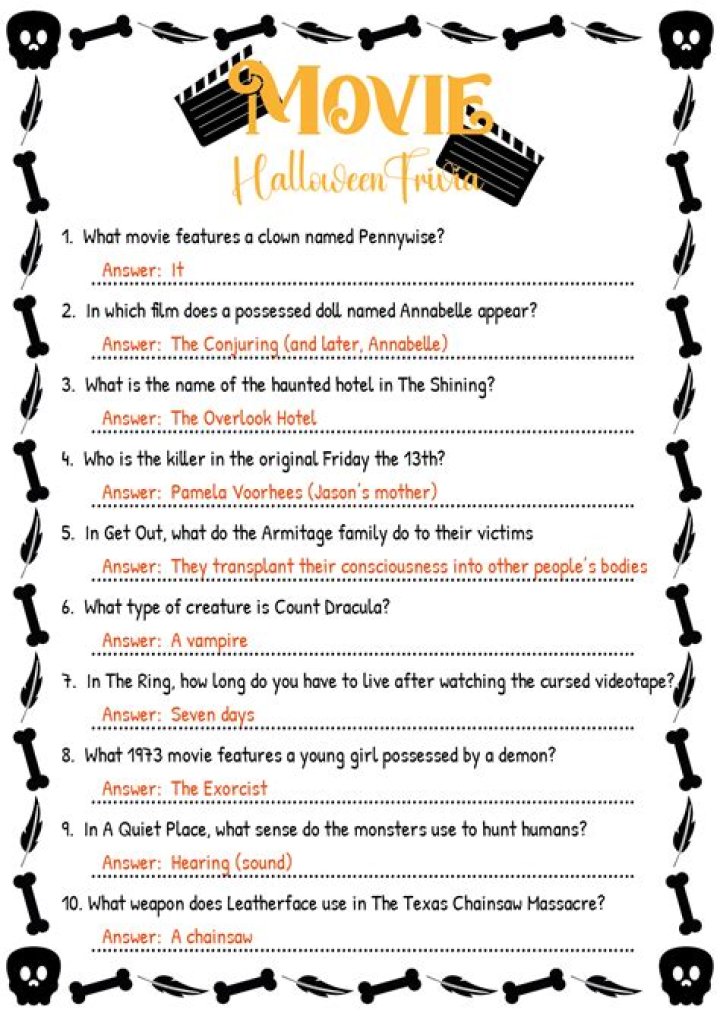 - Entertainment: Horror movie trivia questions and answers PDFs can be a great way to entertain yourself and your friends. You can use them to test your knowledge of the horror genre, learn new facts about your favorite horror movies, and even discover new movies to watch.