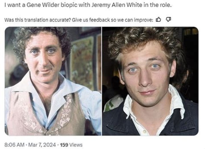 Take note of the online discussions and fan casting that suggest Jeremy Allen White as a potential actor to portray Gene Wilder in a biopic.