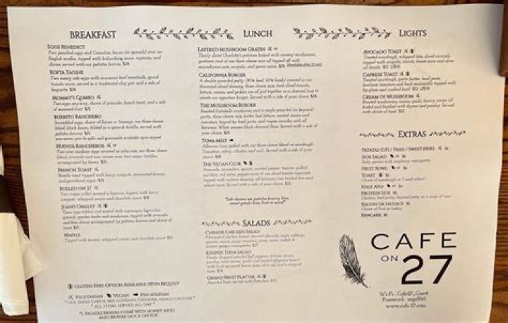 To learn more about Cafe on 27 and its menu, visit the restaurant's website or social media pages.
