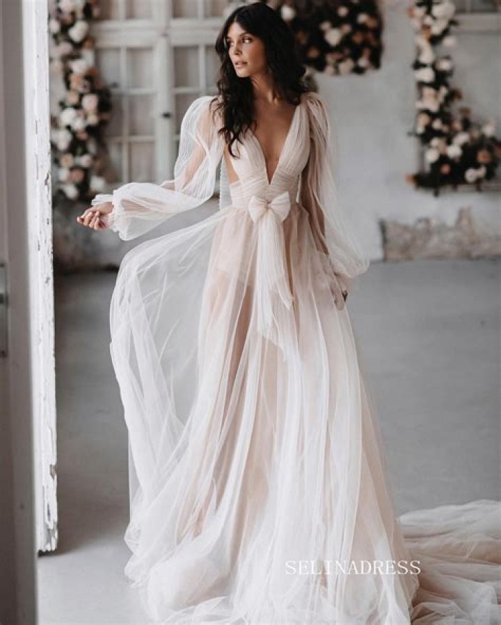 - Sheer fabrics: Lace, tulle, organza, and chiffon are popular choices for see through bridal dresses.