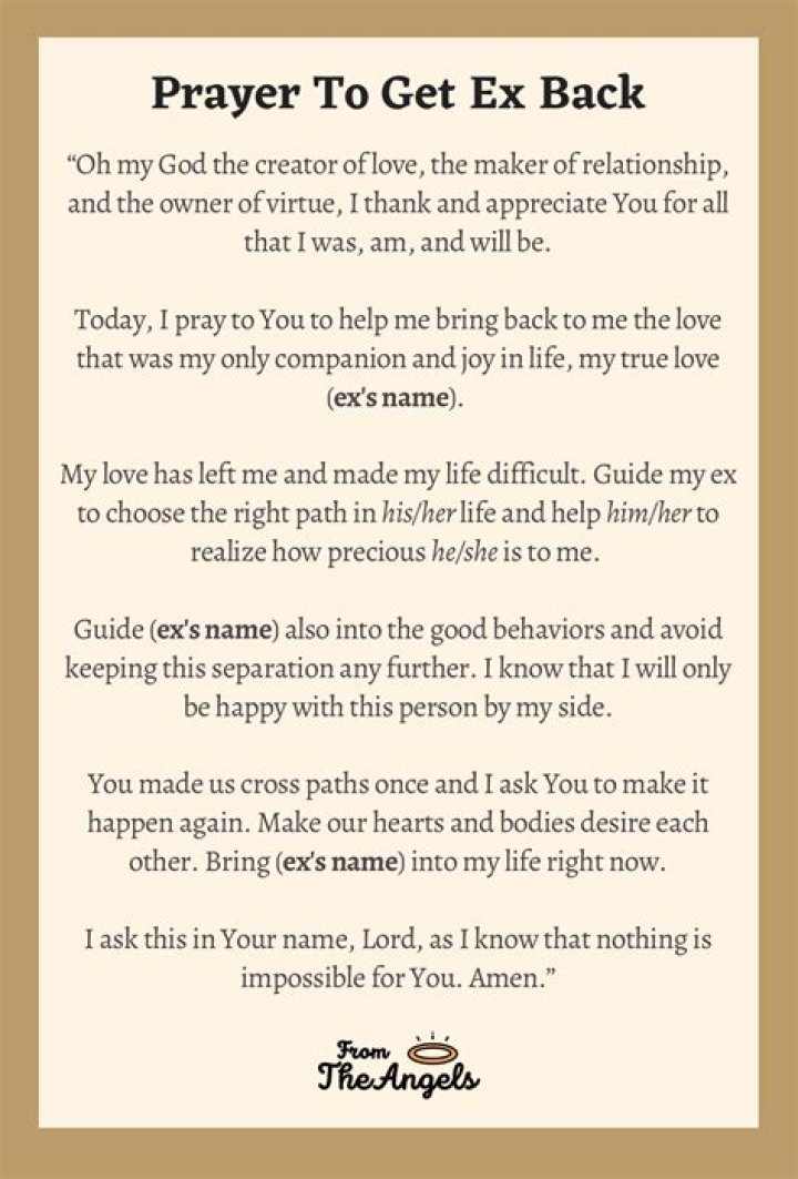 - Trust and Reliance: Praying for an ex to come back involves placing trust and reliance on a higher power to intervene and influence the situation. Individuals may believe that their prayers have the ability to change outcomes or guide events in their favor.